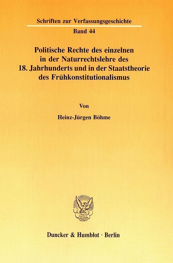 Politische Rechte des einzelnen in der Naturrechtslehre des 18. Jahrhunderts und in der Staatstheorie des Frühkonstitutionalismus.