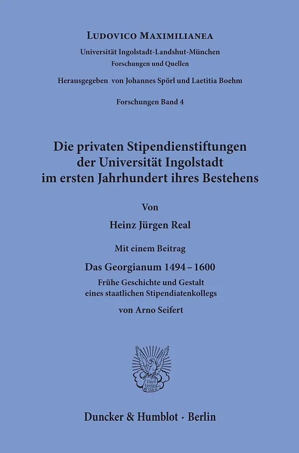 Die privaten Stipendienstiftungen der Universität Ingolstadt im ersten Jahrhundert ihres Bestehens.