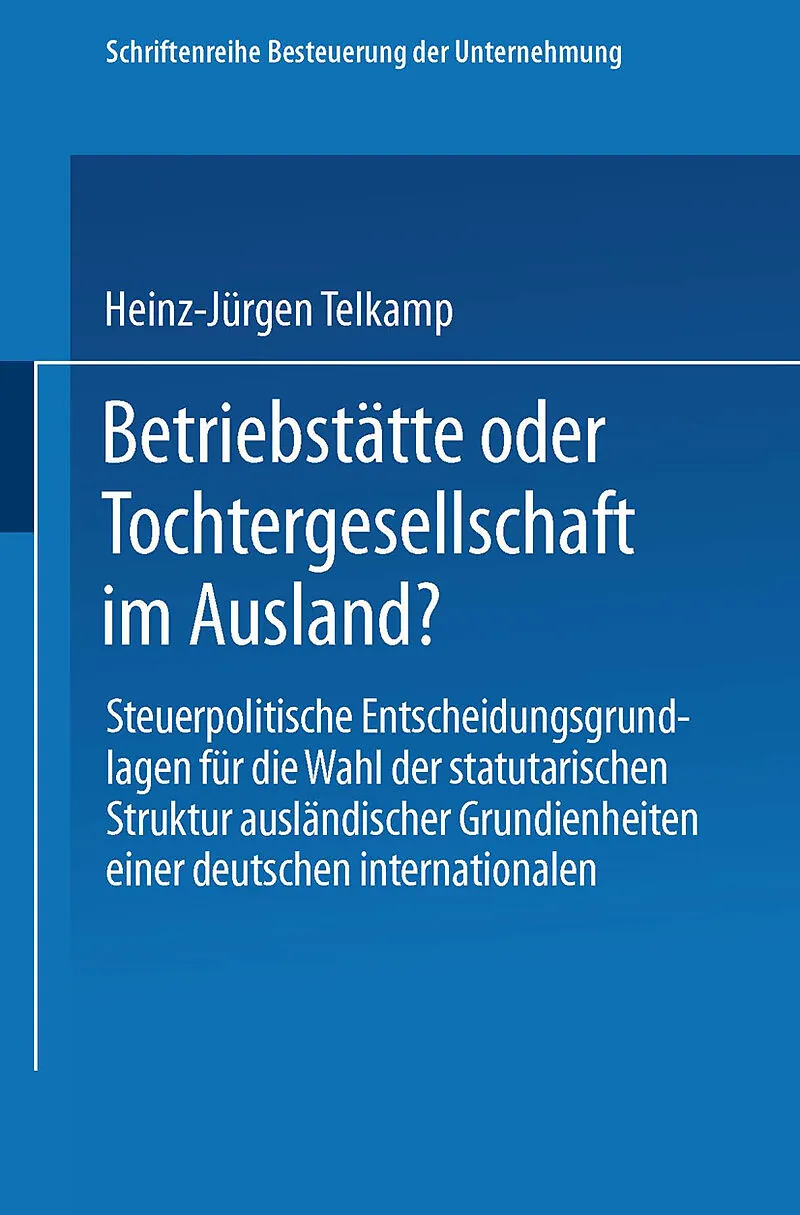 Klappentext Originally presented as the author's thesis, Cologne, 1974. Inhalt Grundlegung.- Struktur des steuerpolitischen Entscheidungsproblems.- Genetische Analyse der Besteuerungsunterschiede zwischen Betriebstätte und Tochtergesellschaft im Ausland.- Erge...