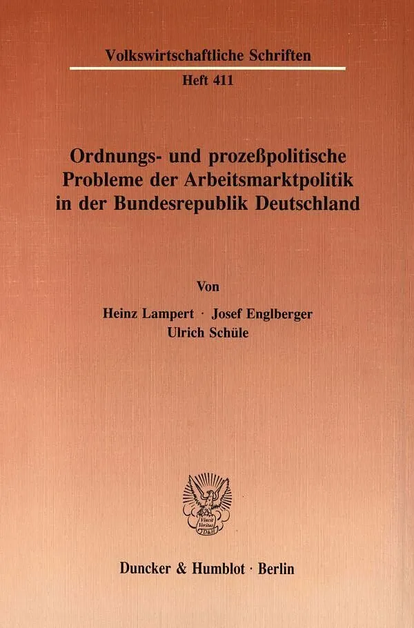 Ordnungs- und prozeßpolitische Probleme der Arbeitsmarktpolitik in der Bundesrepublik Deutschland.