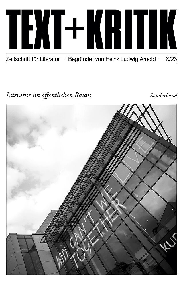 Literatur im öffentlichen Raum: politisch performt geheim gesprüht ästhetisch installiert. Wo uns Literatur unerwartet begegnet, bewegt und erregt. Anders als der Begriff der 'Kunst im öffentlichen Raum' (engl. 'Public Art') hat sich die Bezeichnung 'Literatur...
