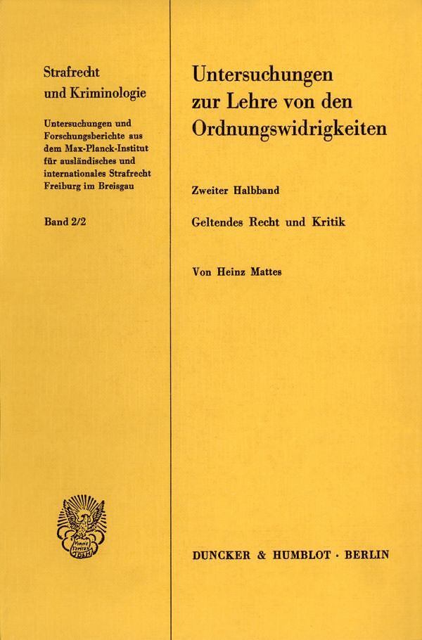 Untersuchungen zur Lehre von den Ordnungswidrigkeiten.