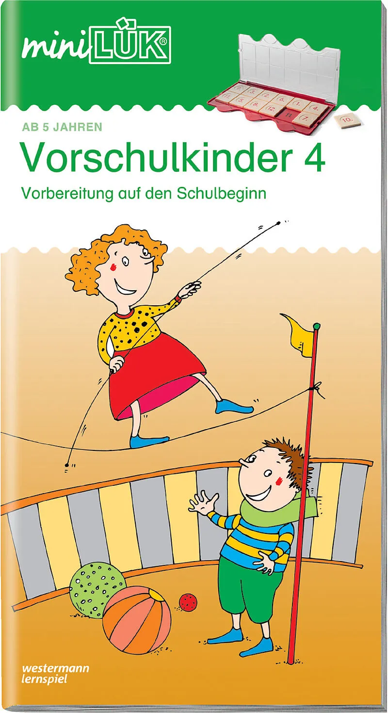Das miniLÜK-Übungsheft " Vorschulkinder 4 " ist das finale Heft der gleichnamigen Reihe, die mit witzig illustrierten Aufgaben, die die visuelle Wahrnehmung , die Kombinationsgabe , das Konzentrationsvermögen sowie den Umgang mit Zahlen und die Orientierung i...
