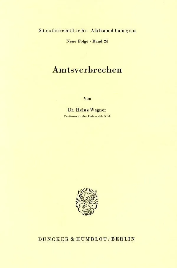 Autorentext Prof. Dr. Heinz Wagner, Studium in Köln, Berlin und Göttingen, Promotion 1966, Habilitation 1974 mit einer Arbeit über "Amtsverbrechen", seit seiner Berufung nach Kiel 1974 auf den Lehrstuhl für Strafrecht und Strafprozessrecht auch prakt...