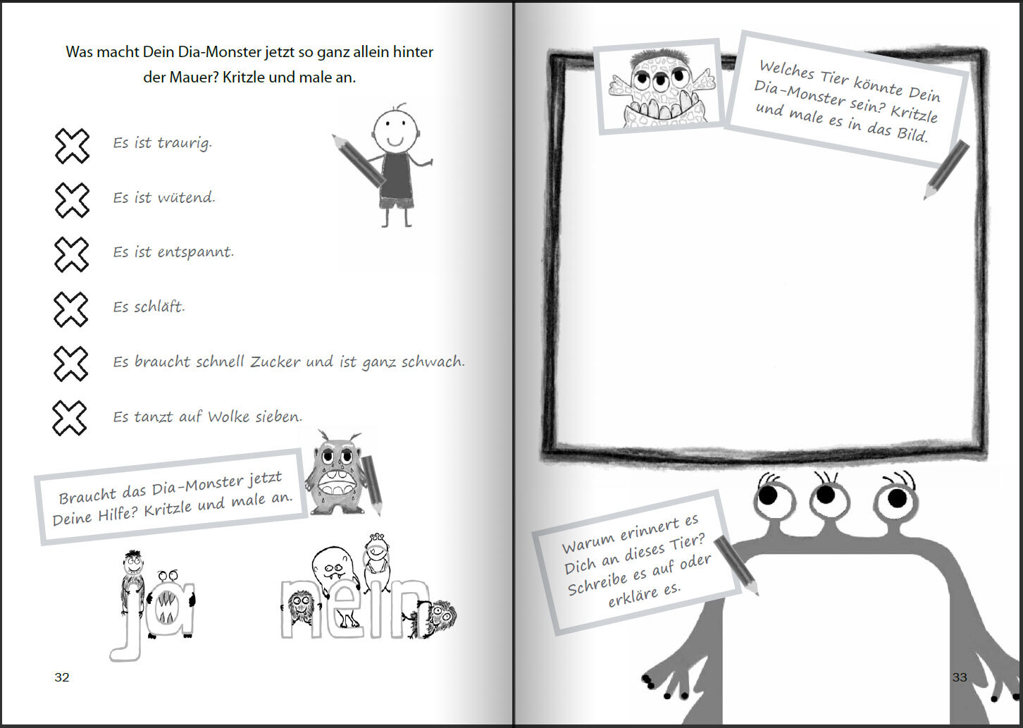 Hast Du Diabetes Typ 1? Dann ist das DIA-MONSTER Kritzelmalbuch perfekt für Dich geeignet! Hier kannst Du unzählige DIA-MONSTER ankritzeln und bunt ausmalen. Welche Eigenschaften hat Dein eigenes DIA-MONSTER? Was magst Du an ihm? Hat es vielleicht auch Angewoh...