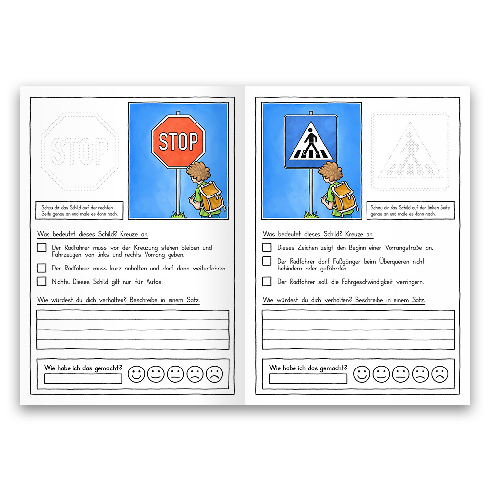Dieses Heft enthält viele Abbildungen und Fragen zu den wichtigsten Verkehrszeichen und regeln für die Fahrradprüfung. Es eignet sich somit optimal für die Vorbereitung zu Hause oder in der Schule. Die Liste der Verkehrszeichen umfasst auch die in der StVO-Nov...