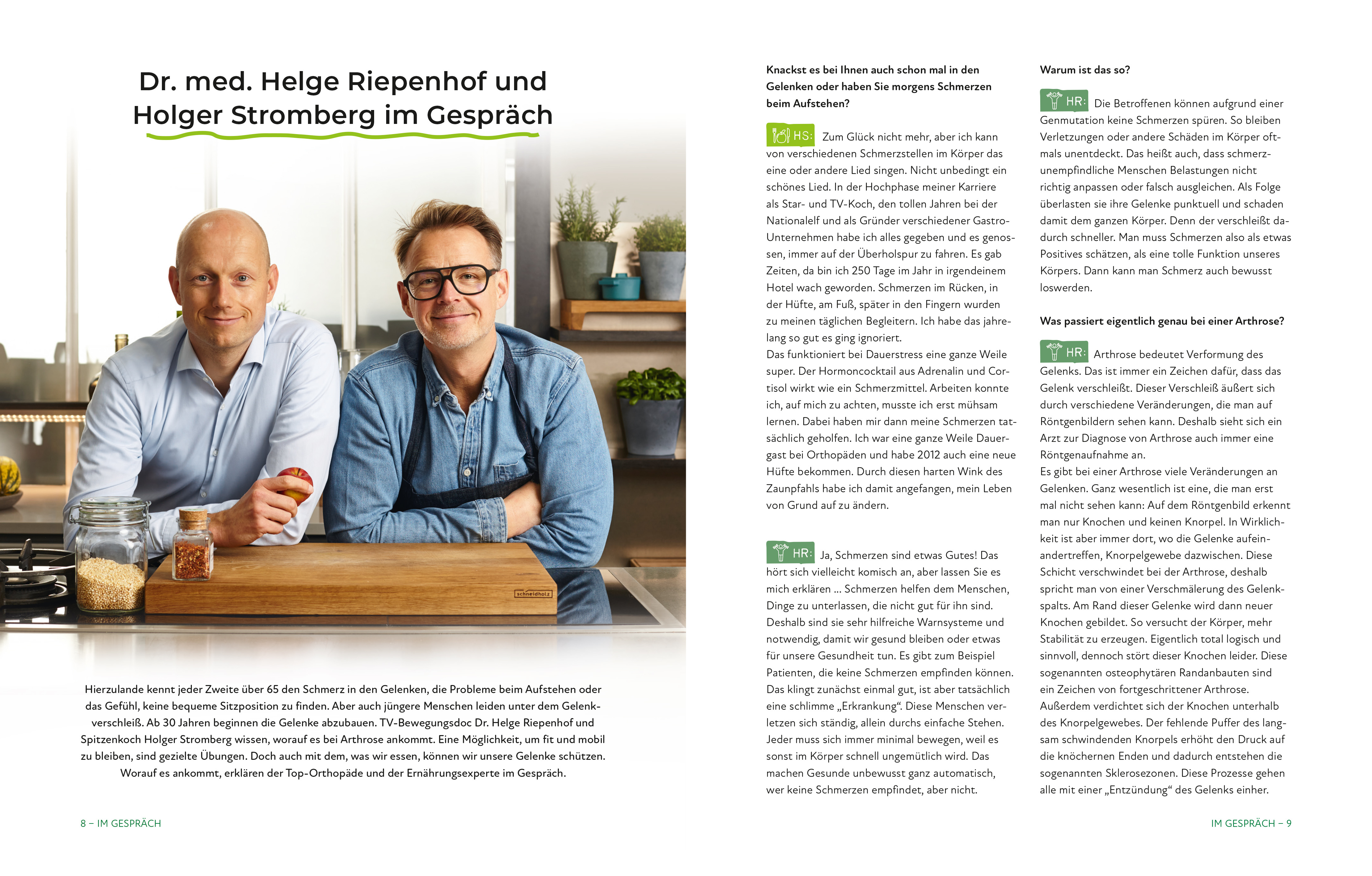 Über 5 Millionen Menschen in Deutschland leiden unter Arthrose. Doch jeder kann selbst viel dafür tun, um Schmerzen zu lindern oder gar zu besiegen. Der bekannte TV-Bewegungs-Doc Dr. Helge Riepenhof und Spitzenkoch Holger Stromberg wollen mit ihrem ganzheitli...