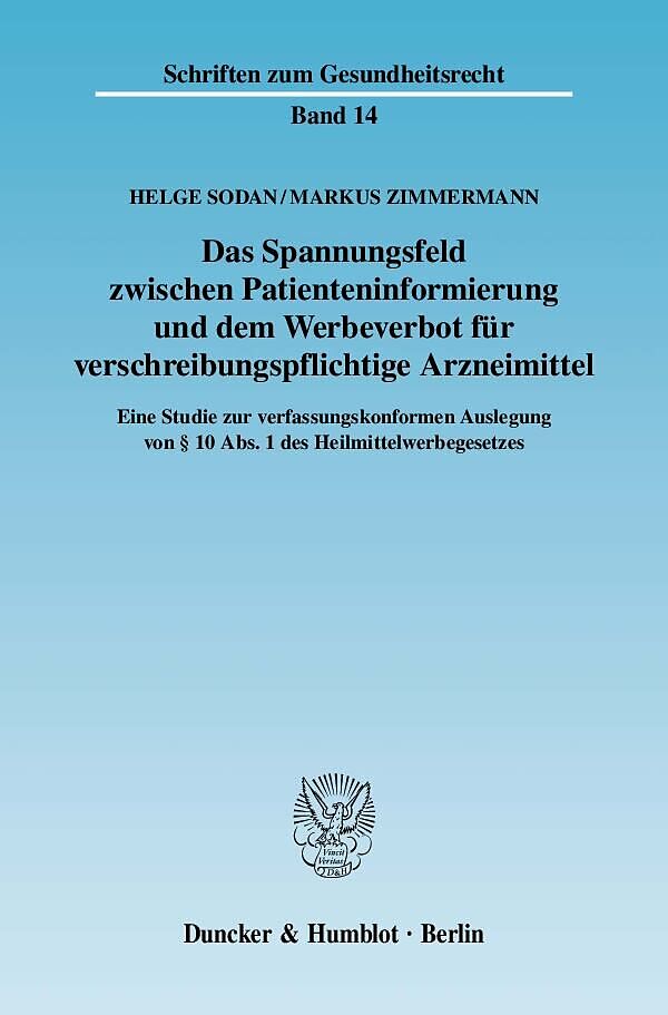 Das Heilmittelwerberecht steht in einem Spannungsverhältnis zu den Grundrechten von Patienten und Werbungstreibenden. Vor diesem Hintergrund untersuchen Helge Sodan und Markus Zimmermann, inwieweit die seit längerer Zeit in Rechtsprechung und Schrifttum festst...