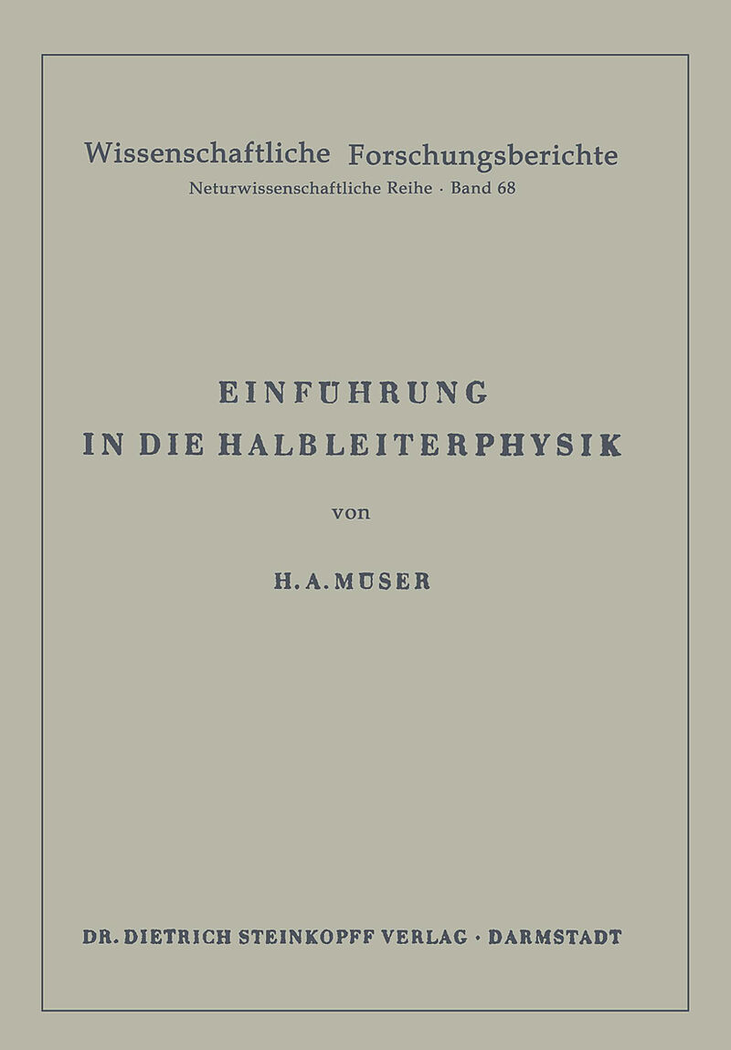 IN DIE HALBLEITERPHYSIK Von DR. HELMUT A. MÜSER apl. Professor an der Johann-Wolfgang-Goethe-Universität in Frankfurt am Main Mit 35 Abbildungen in 46 Einzeldarstellungen und 2 Tabellen DR. DIETRICH STEINKOPFF VERLAG DARM STADT 1960 ISBN 978-3-7985-0172-0 ISBN...
