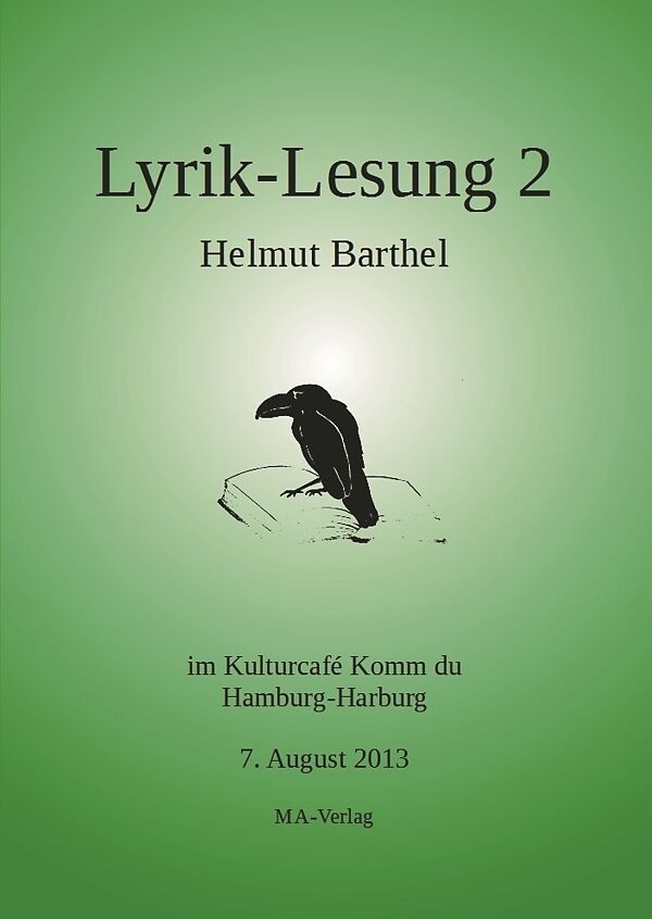 Seit Mai 2013 präsentierte Helmut Barthel in lockerer Lesefolge aus seinem reichen Fundus von über 1000 Gedichten im Kulturcafé Komm du in Hamburg-Harburg eine Auswahl aus der Edition "Dichterstube". Die ersten fünf Lesungen zeichnet der MA-Verlag jetzt mit ei...