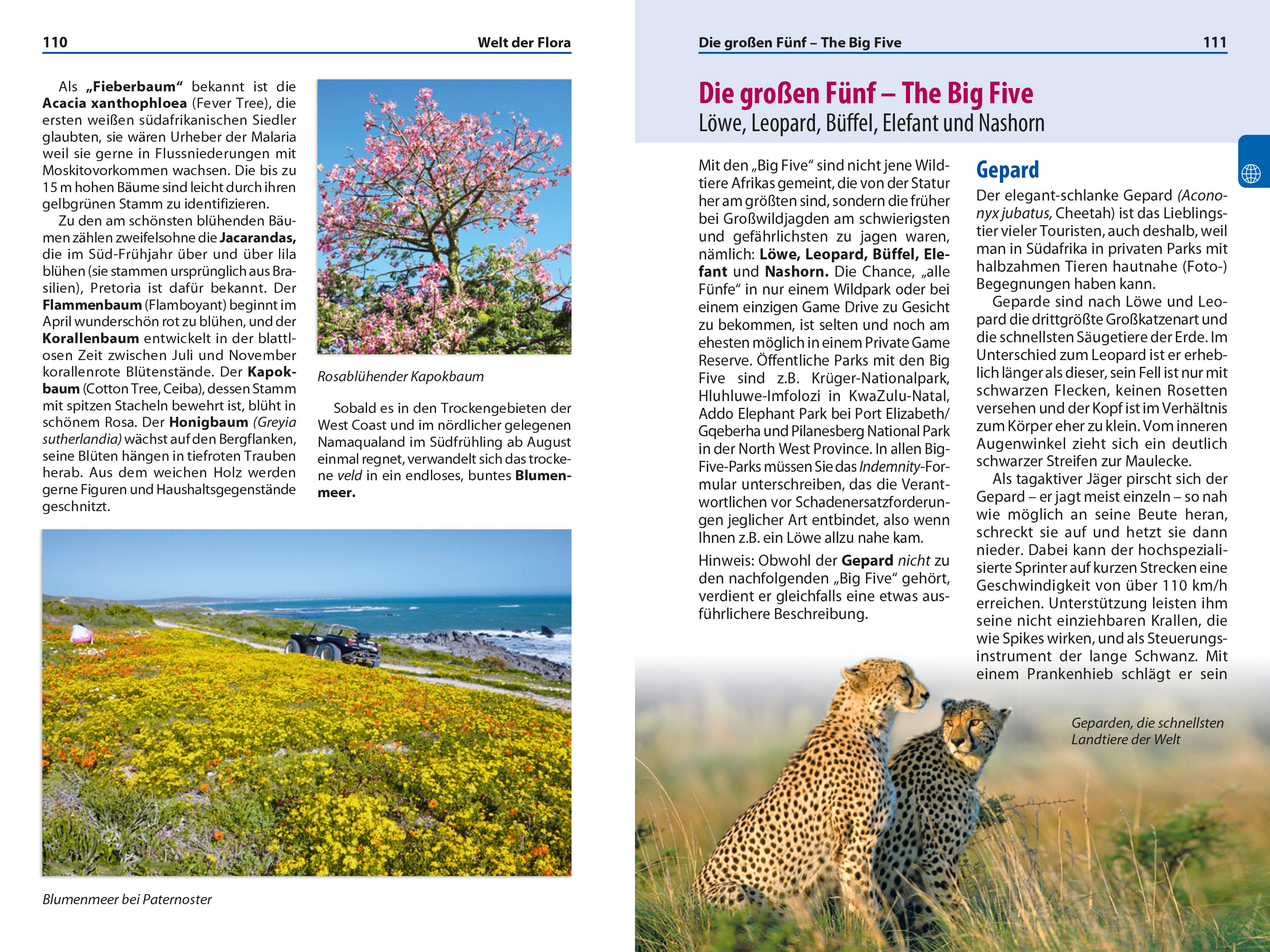 Sanibona Willkommen in Südafrika! Das Land am Kap fasziniert mit spektakulären Landschaften, artenreicher Tierwelt darunter die legendären Big Five sowie endlosen Stränden an Atlantik und Indischem Ozean. Wildnisabenteuer im Kruger-Nationalpark, lebendige Kul...