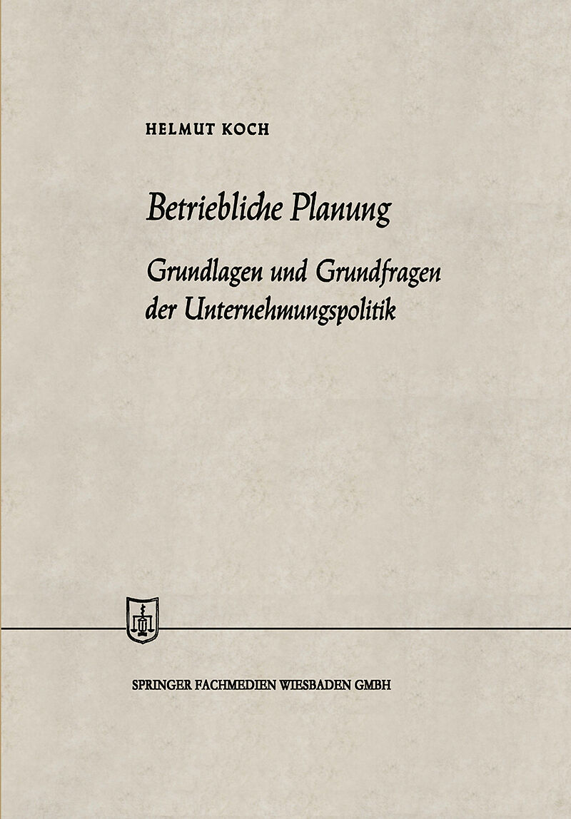 Diesem Band der "Wirtschaftswissenschaften" liegt vor all em das Anliegen zugrunde, die "unternehmerische" oder (in gleichbedeutender anderer Aus drucksweise) "betriebliche" Planung als ein geschlossenes Ganzes, begriindet durch d...