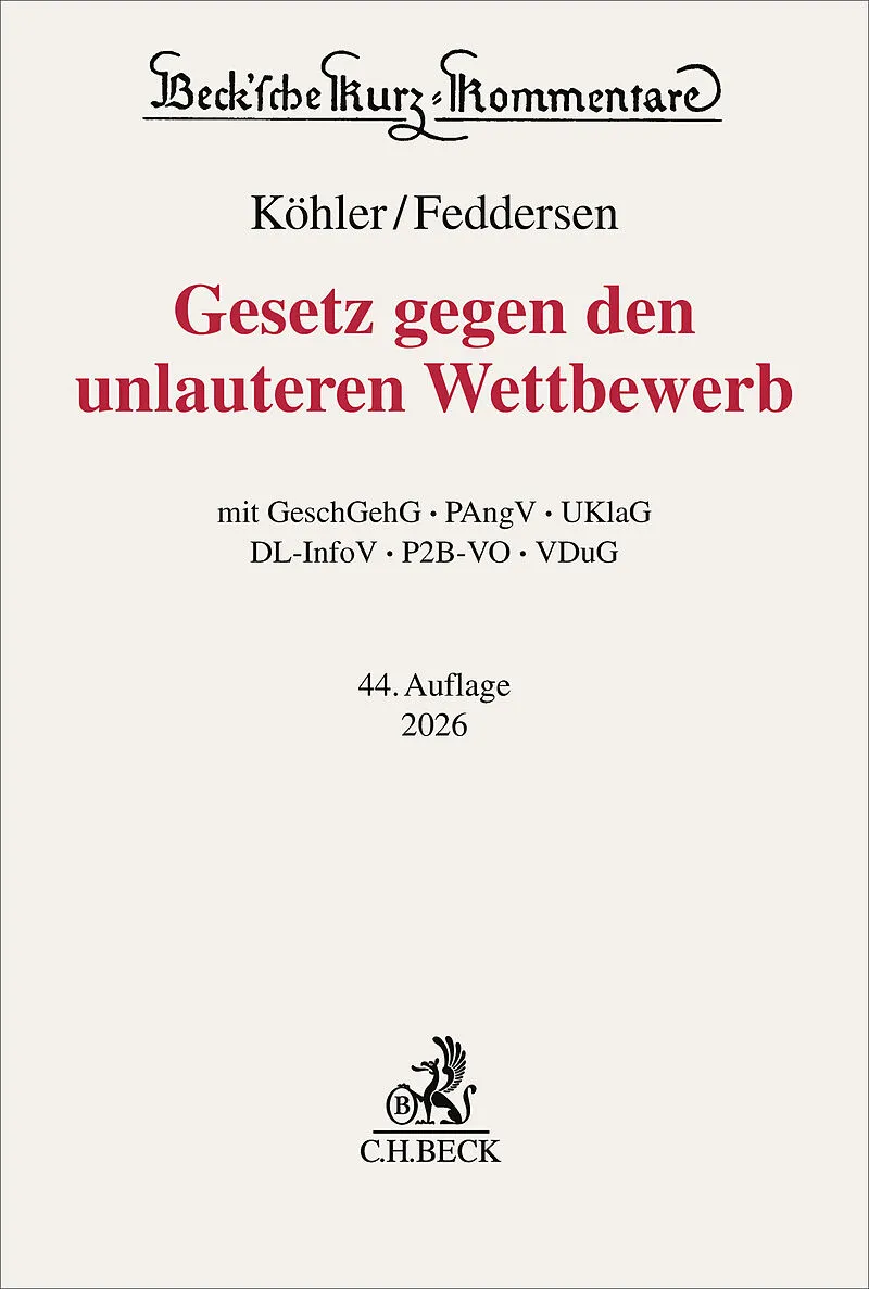 Zum Werk Der Köhler/Feddersen gilt als unverzichtbares Standardwerk. Kommentiert sind neben dem UWG das Geschäftsgeheimnisgesetz (GeschGehG), die Preisangabenverordnung (PAngV), das Gesetz über Unterlassungsklagen bei Verbraucherrechts- und anderen Verstößen (...