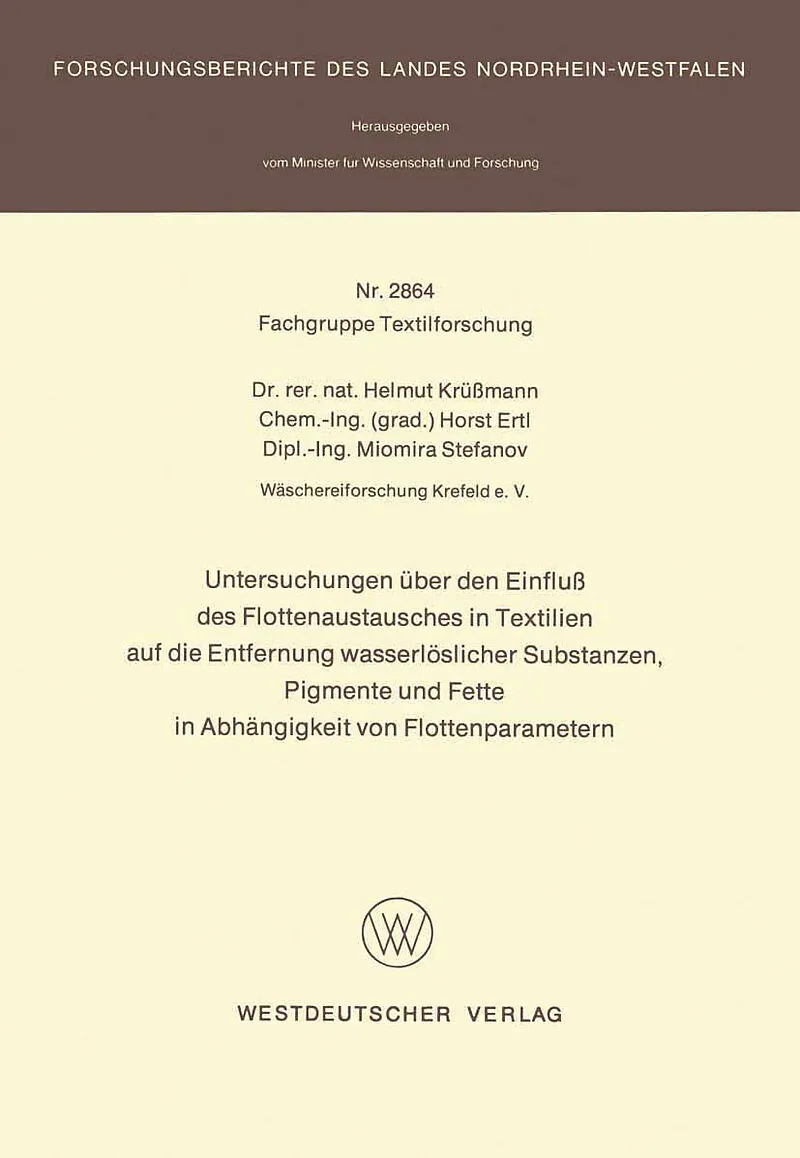 Untersuchungen über den Einfluß des Flottenaustausches in Textilien auf die Entfernung wasserlöslicher Substanzen, Pigmente und Fette in Abhängigkeit von Flottenparametern