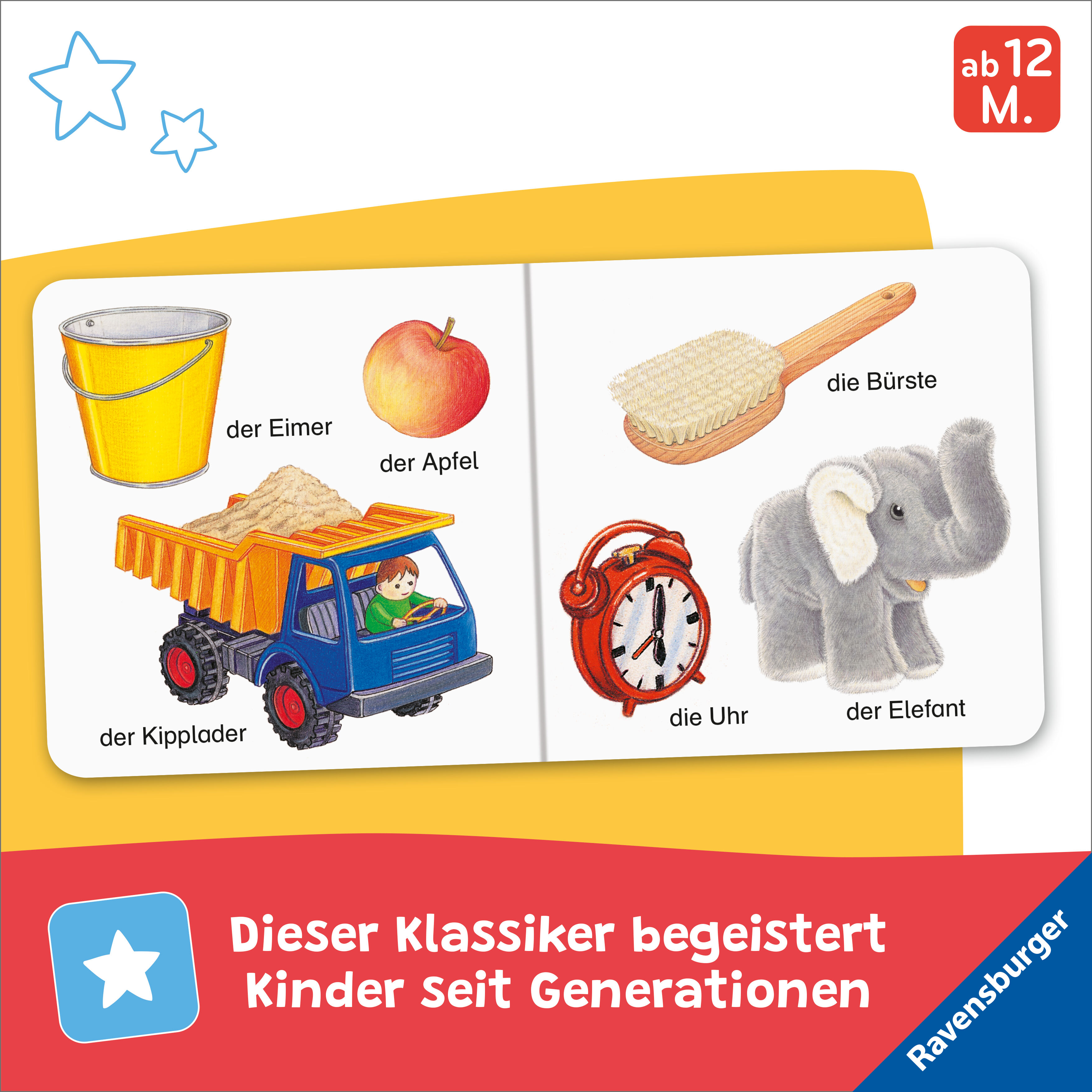 Schlüssel, Fläschchen, Hampelmann In diesem allerersten Wörterbuch finden Babys ab 9 Monaten viele Lieblingssachen aus ihrem Alltag wieder. Liebevoll gezeichnet, als wären die Gegenstände zum Anfassen, lädt das Buch zum Zeigen, Erkennen und Benennen ein. So ma...
