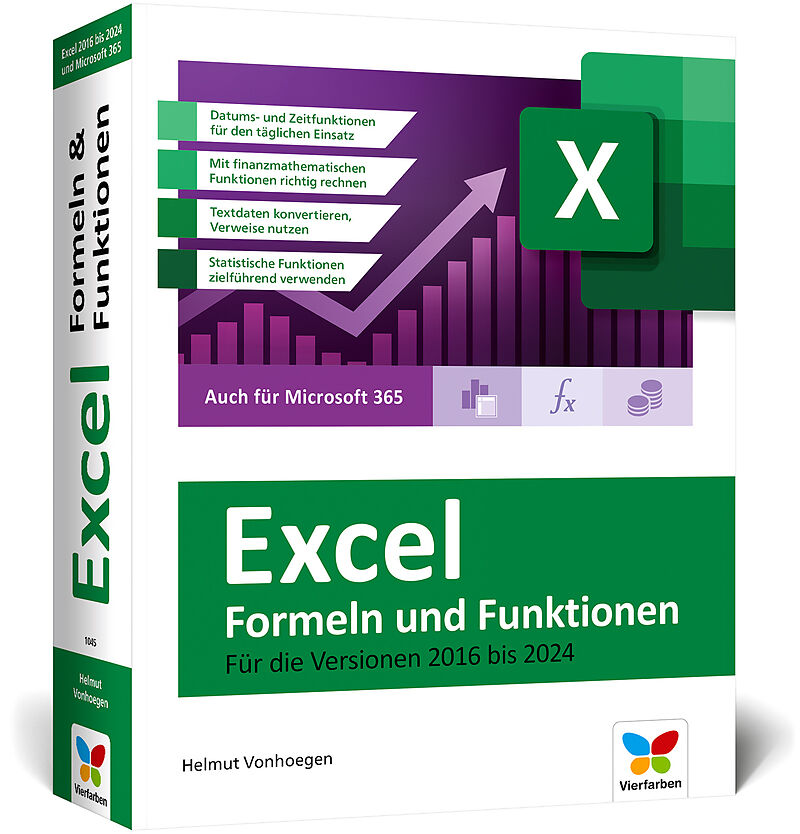 Alle Formeln und Funktionen immer griffbereit!Dieses übersichtliche Nachschlagewerk hilft Ihnen bei der täglichen Arbeit mit Excel. Egal, ob Text- und Datumsfunktionen, statistische Funktionen, Finanzmathematik, Matrix- oder Datenbankfunktionen, hier finden Si...Alle Formeln und Funktionen immer griffbereit!Dieses übersichtliche Nachschlagewerk hilft Ihnen bei der täglichen Arbeit mit Excel. Egal, ob Text- und Datumsfunktionen, statistische Funktionen, Finanzmathematik, Matrix- oder Datenbankfunktionen, hier finden Sie schnell und zuverlässig die von Ihnen benötigte Hilfestellung. Anhand anschaulicher Beispiele aus der Praxis erfahren Sie, wie Sie die benötigte Funktion konkret anwenden. Sämtliche Formeln und Funktionen des Tabellenkalkulationsprogramms bis einschließlich Excel 2024 in einem Buch!Vollständige Referenz aller Formeln und FunktionenDatums- und Zeitfunktionen, statistische Funktionen, Finanzmathematik, Matrixfunktionen im täglichen EinsatzVerständliche Anleitungen und praxisnahe BeispieleFür Excel 2024 und ältere Versionen. Auch für das Office-Abo Microsoft 365 geeignet Aus dem Inhalt:Einstieg in Berechnungen mit ExcelBerechnungstoolsFinanzmathematische FunktionenDatums- und ZeitfunktionenMathematische und trigonometrische FunktionenTechnische FunktionenStatistische FunktionenKompatible statistische FunktionenNachschlage- und VerweisfunktionenDatenbankfunktionenCube-FunktionenTextfunktionenLogische FunktionenInformationsfunktionenZusätzliche Tools für die DatenanalyseEntwicklung eigener FunktionenAnhang: Alphabetische Liste der Funktionen, Funktionsliste DeutschEnglisch/EnglischDeutsch