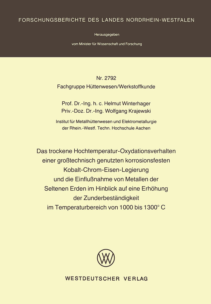 Das trockene Hochtemperatur-Oxydationsverhalten einer großtechnisch genutzten korrosionsfesten Kobalt-Chrom-Eisen-Legierung und die Einflußnahme von Metallen der Seltenen Erden im Hinblick auf eine Erhöhung der Zunderbeständigkeit im Temperaturbereich von