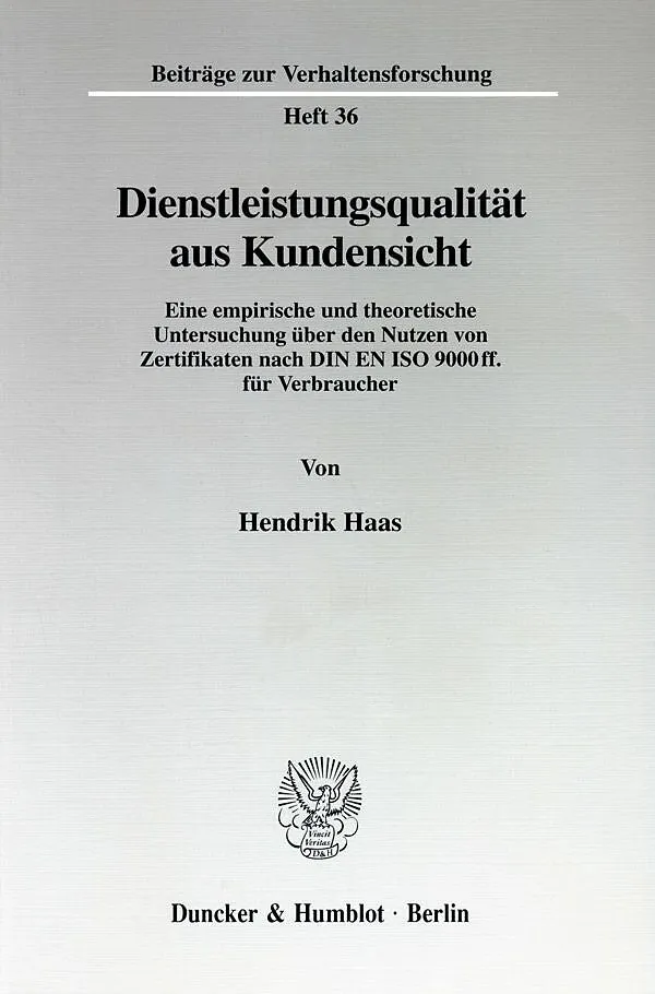Inhaltsübersicht: A. Theoretischer Rahmen: Einleitung - Qualitätsbeurteilung von Dienstleistungen als Verbraucherproblem - Konventionelle Institutionen zur Intransparenzreduktion - Normenfamilie ISO 9000 und Zertifizierung - B. Die Untersuchung: Das Zertifikat als valider Qualitätsindikator für Dienstleistungen? - Operationalisierung des Konstrukts "Dienstleistungsqualität" - Instrumente und Vorgehensweise bei der empirischen Erhebung - C. Die Untersuchungsergebnisse: Ergebnisse der empirischen Erhebung - Ergebnisse der theoretischen Analyse - Konsequenzen der Befunde für die Praxis - Anhang: Musteranschreiben - Musterfragebogen - Internetadressen-Verzeichnis - Literaturverzeichnis - Sachregister