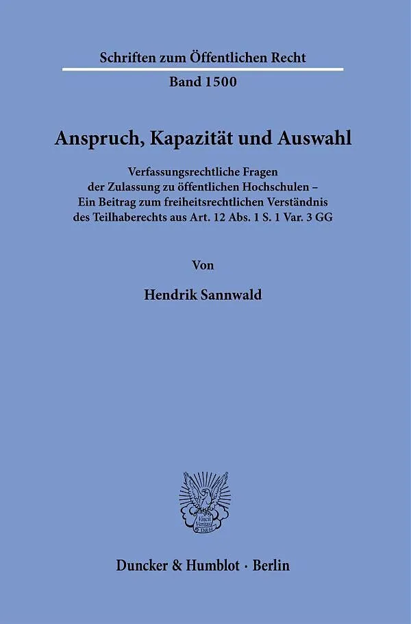 Die Arbeit untersucht die Spannungsverhältnisse zwischen den betroffenen, oftmals kollidierenden Grundrechten und sonstigen Gütern von Verfassungsrang im Bereich der Hochschulzulassung. Aufgezeigt werden insbesondere die Gestaltungsspielräume staatlicher Akteu...