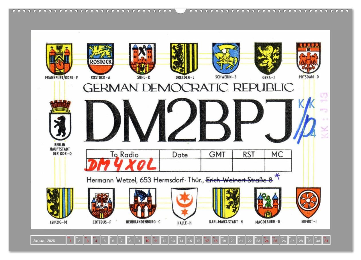 DDR - Ostalgie auf QSL-Karten (hochwertiger Premium Wandkalender 2026 DIN A2 quer), Kunstdruck in Hochglanz