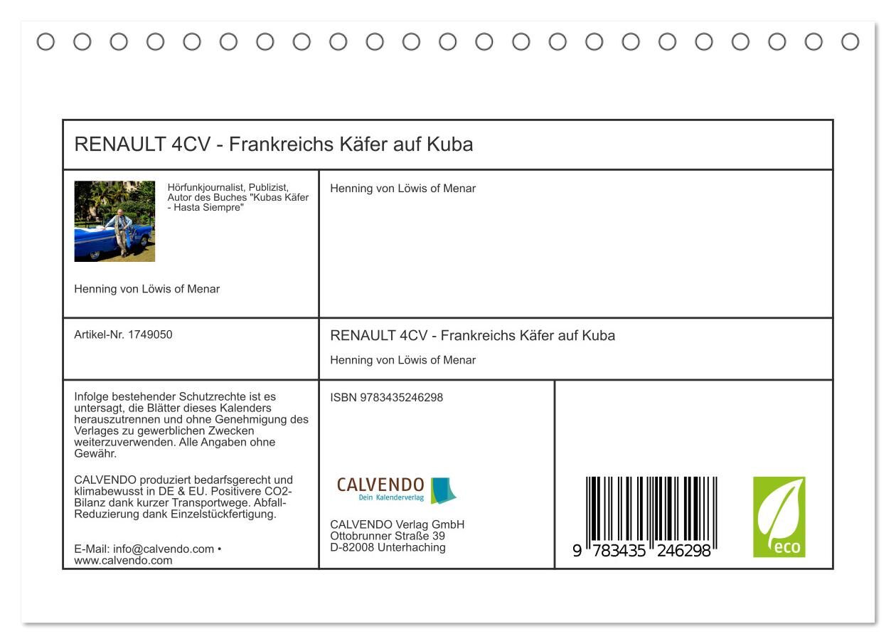 RENAULT 4CV - Frankreichs Käfer auf Kuba (Tischkalender 2025 DIN A5 quer), CALVENDO Monatskalender