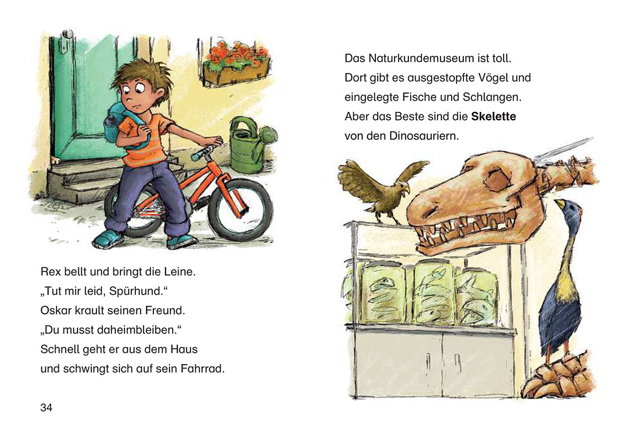 mit Spotlack und Stickerbogen Wahnsinn! Toni landet mitten im Erdmittelalter und reitet auf einem echten Triceratops. Die Dinokinder Sauri und Tyra versuchen, ein Ei aus den Klauen des gemeinen Flugsauriers zu befreien. Und Oskar jagt im Naturkundemuseum den D...