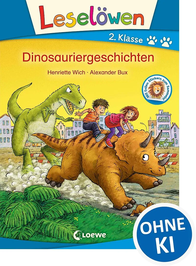 mit Spotlack und Stickerbogen Wahnsinn! Toni landet mitten im Erdmittelalter und reitet auf einem echten Triceratops. Die Dinokinder Sauri und Tyra versuchen, ein Ei aus den Klauen des gemeinen Flugsauriers zu befreien. Und Oskar jagt im Naturkundemuseum den D...