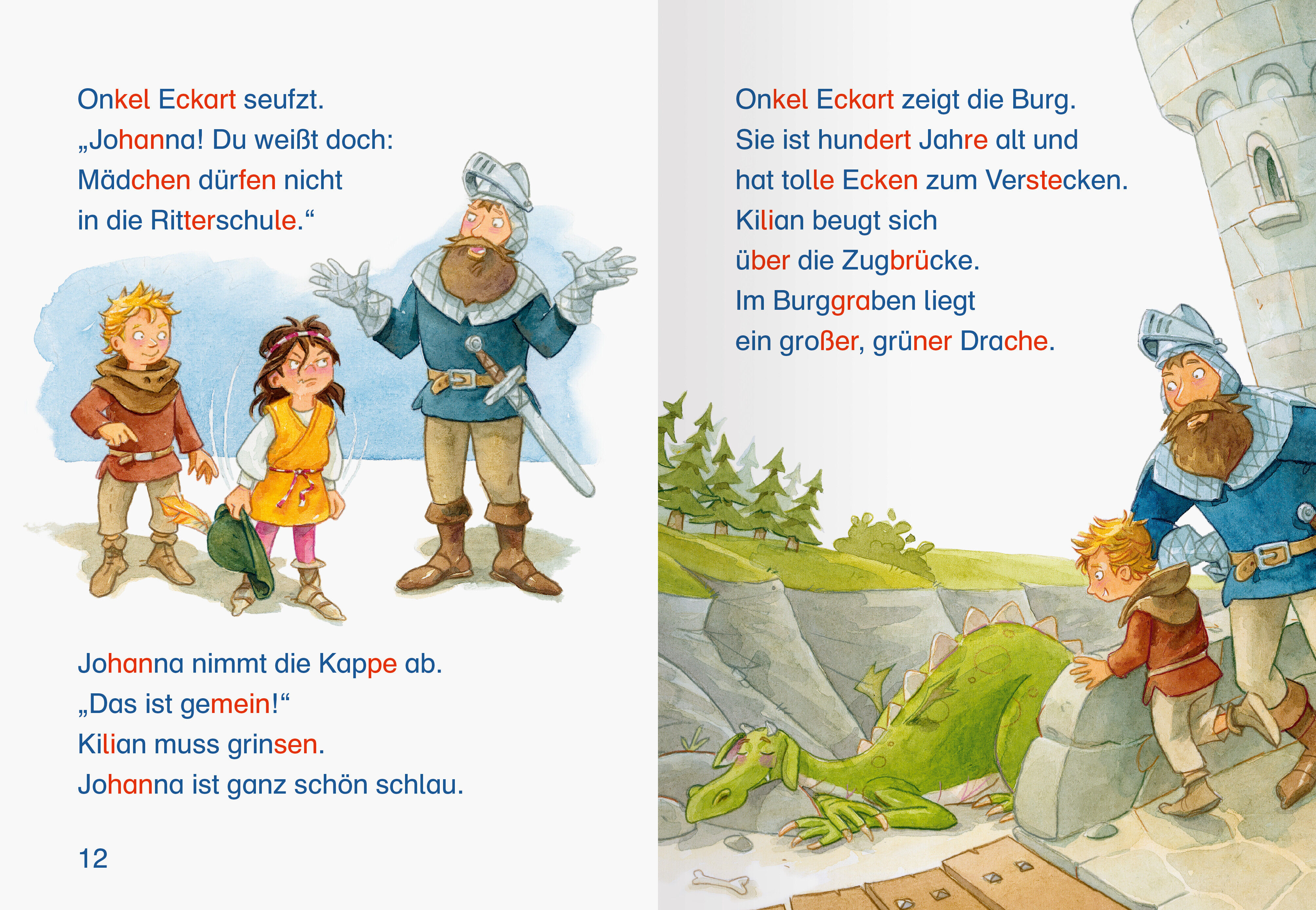 Lesen lernen wie im Flug! Kilian ist glücklich: Er darf bei seinem Onkel Eckart zur Ritterschule gehen. Bei seinen Streifzügen durch die Burg trifft er Johanna, die sich versteckt: Für Mädchen ist die Schule nämlich nicht erlaubt. Als eines Tages der Rote Ritt...