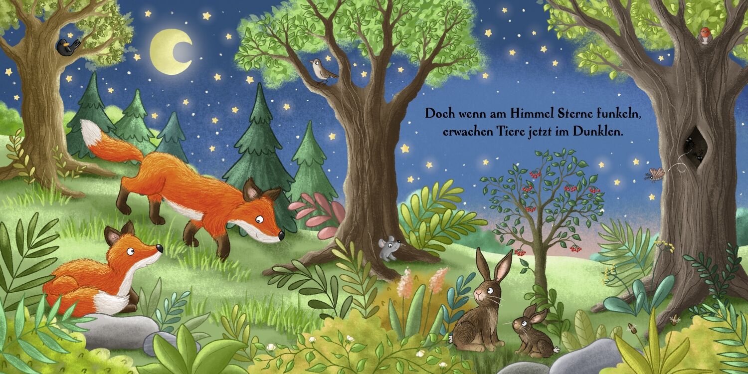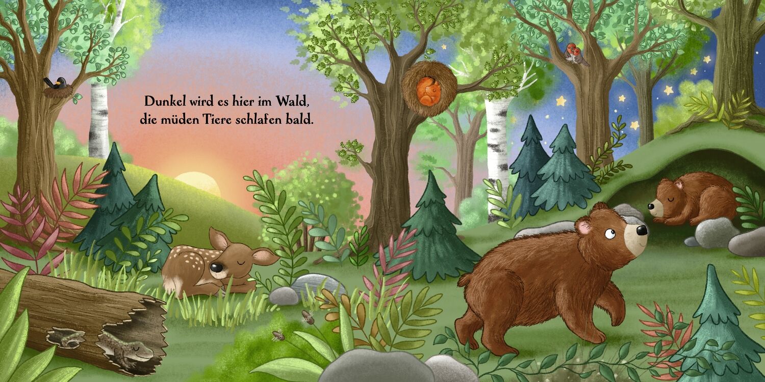 Was machen die Waldtiere eigentlich nachts? Mit dem Einbruch der Dunkelheit kehrt Ruhe im Wald ein. Während einige müde Tiere schlafen gehen, erwachen andere. Der Dachs, das Glühwürmchen, die Eule, der Igel und die Fledermausfamilie werden aktiv, bis der näch...