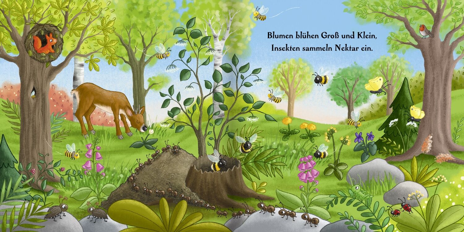 Sagt mal, Reh, Hase und Frosch, wie verbringt ihr eigentlich den Sommer hier im Wald? Im Wald steigen die Temperaturen und es wimmelt nur so vor Leben. Alles ist grün und die Sonne scheint fast den ganzen Tag. Insekten summen geschäftig, Hasen mümmeln sich ge...