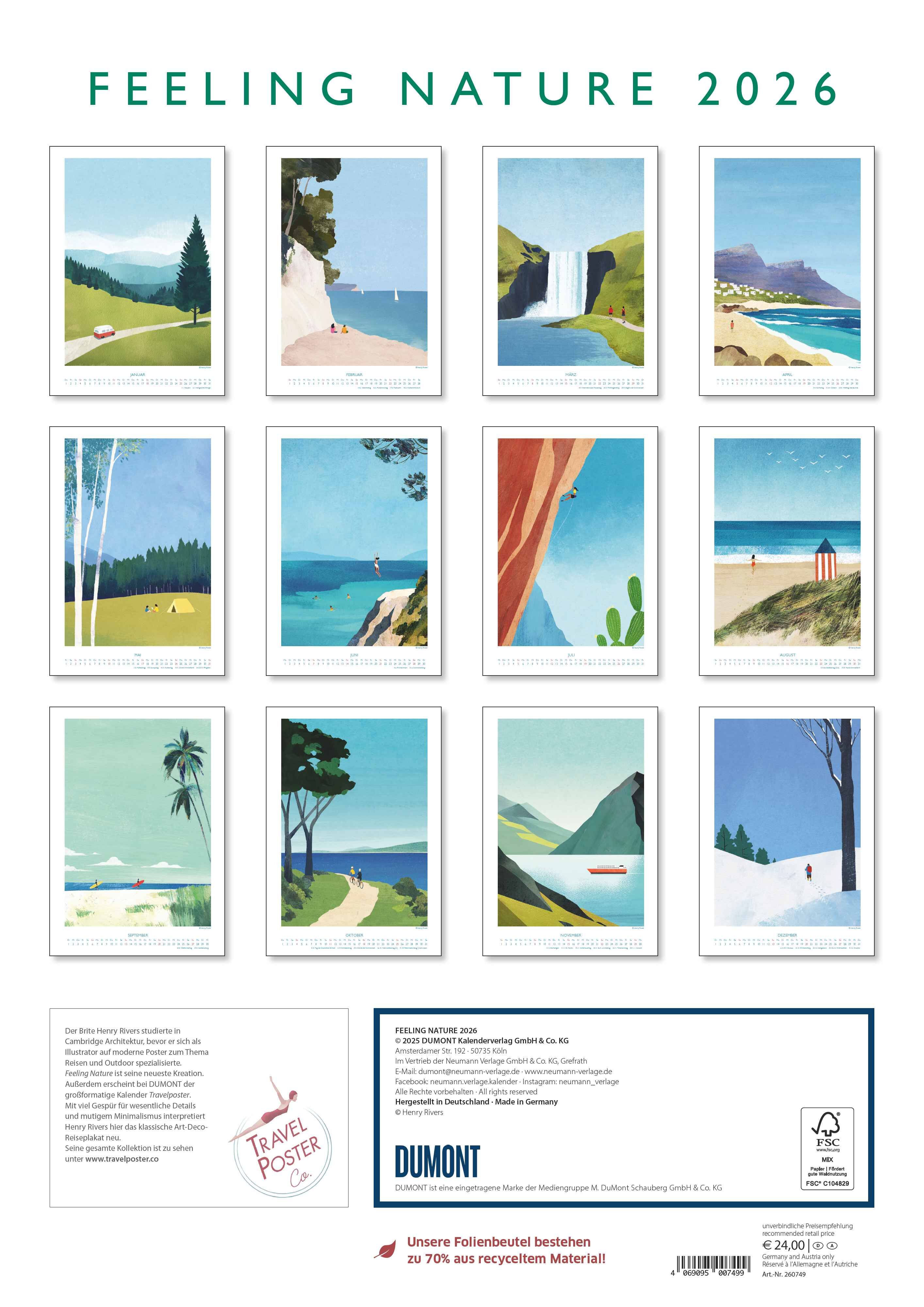 DUMONT - Rivers: Feeling Nature 2026 Wandkalender 30x42 cm Outdoor-Illustrationen von Henry Rivers, dekorative Poster im minimalistischen Design