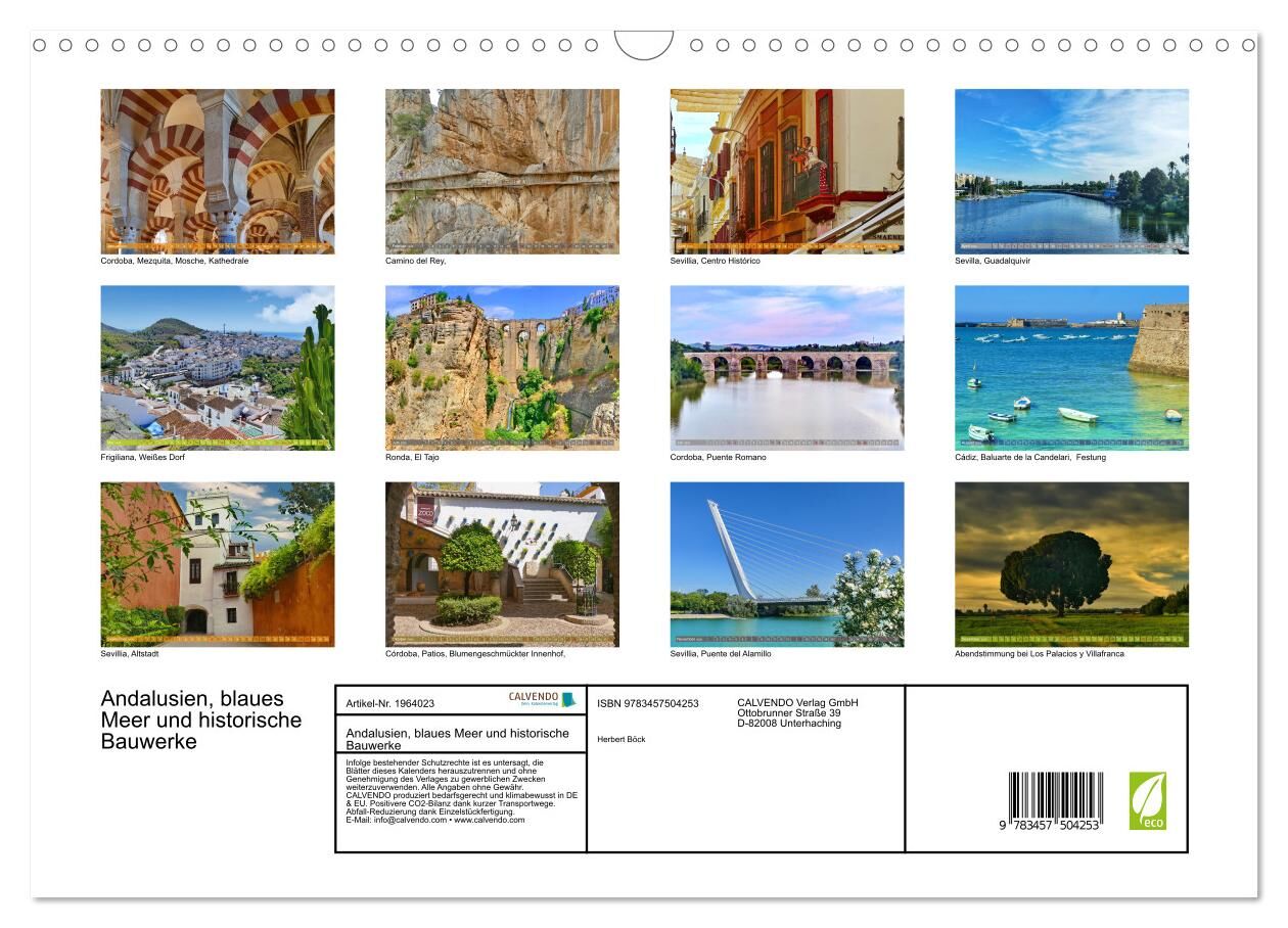Andalusien, blaues Meer und historische Bauwerke (Wandkalender 2026 DIN A3 quer), CALVENDO Monatskalender