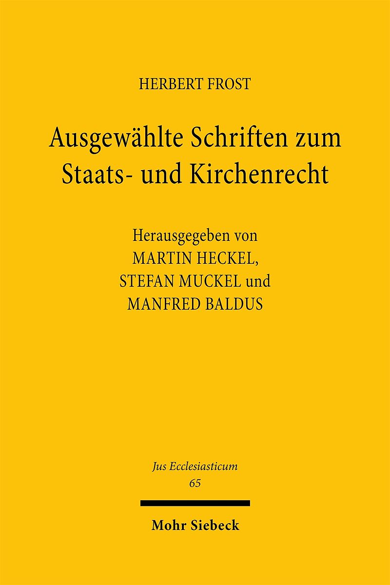 "Professor Dr. Herbert Frost died on August 10, 1998 on his 77th birthday in Cologne. Before acquiring emeritus status in 1986, he was an associate professor of ecclesiastical law, general constitutional law and philosophy of law at the Faculty of Law at the U...