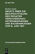 Keine ausführliche Beschreibung für "Gesetz über die Beaufsichtigung der privaten Versicherungsunternehmungen und Bausparkassen vom 6. Juni 1931" verfügbar. Inhalt Frontmatter -- Vorwort -- Inhaltsverzeichnis -- Schrifttum -- Abkürzungen -- Einleitun...