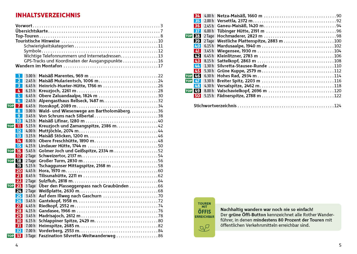 Der Rother Wanderführer Montafon präsentiert 50 sorgfältig ausgewählte Wanderungen, die die ganze Bandbreite der Region abdecken von genussvollen Halbtageswanderungen über aussichtsreiche Tagestouren bis hin zu mehrtägigen Abenteuern. Mit dabei: Highlights wie die Drei Türme und die Drusenfluh, idyllische Etappen rund um die Tilisunahütte, sowie Touren in die Gletscherwelt der Silvretta, bequem erreichbar über die Hochalpenstraße.