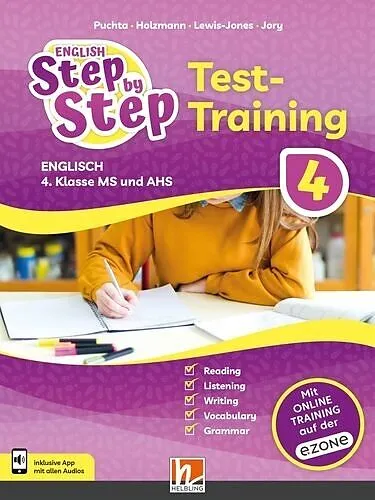 Schularbeiten optimal vorbereiten! Mit dem ENGLISH Step by Step 4 Test-Training stehen den Schülerinnen und Schülern zahlreiche Übungen zu Grammatik, Wortschatz, Schreibtraining, Lese- und Hörverständnis zur Verfügung, die ihnen dabei helfen, sich optimal auf ...