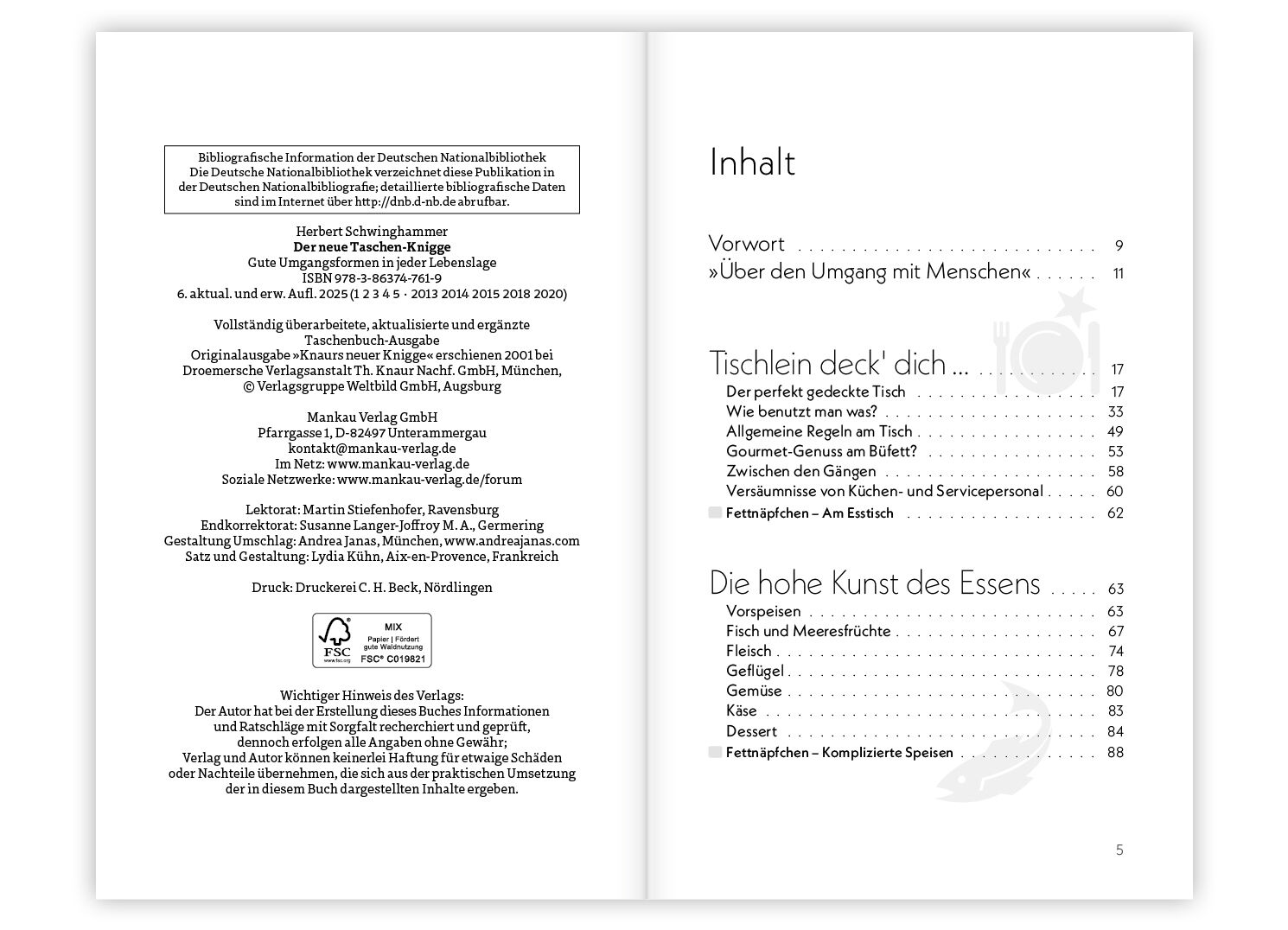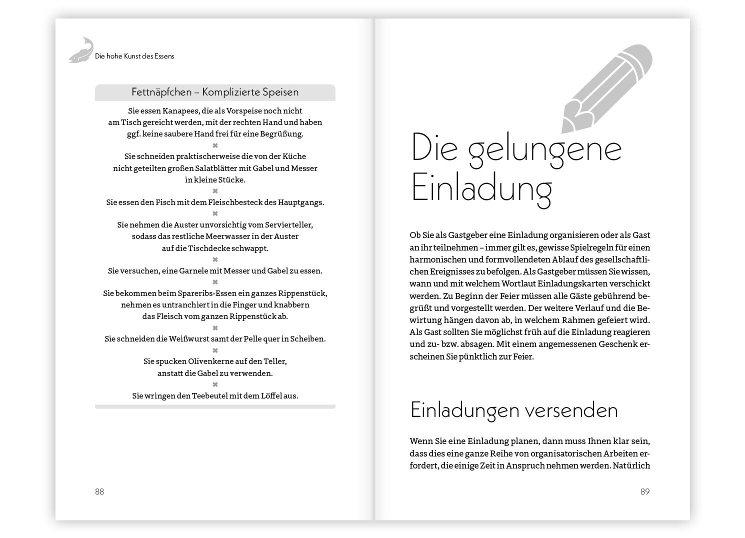 INHALT Vorwort "Über den Umgang mit Menschen" TISCHLEIN DECK' DICH ... Der perfekt gedeckte Tisch Wie benutzt man was? Allgemeine Regeln am Tisch Gourmet-Genuss am Büfett? Zwischen den Gängen Versäumnisse von Küche…