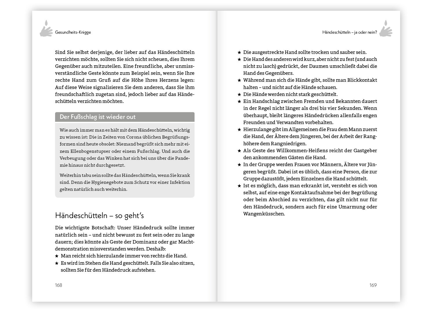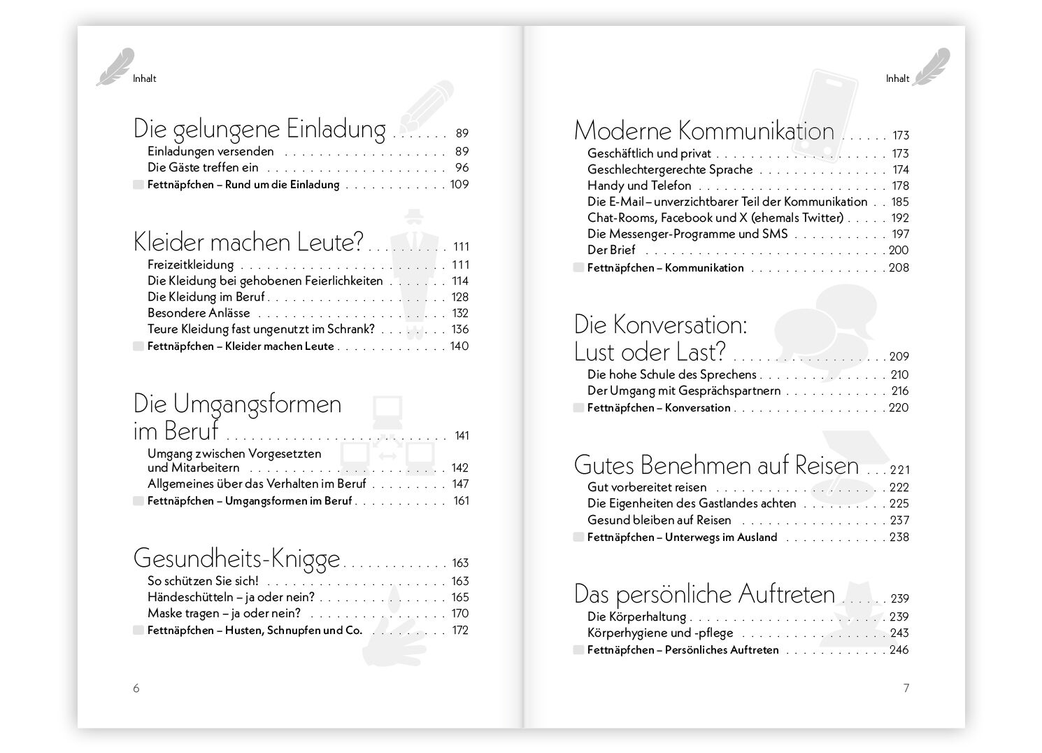 Der moderne Ratgeber für ein stilvolles Miteinander Gute Umgangsformen sind wieder in. Sie stellen einen wichtigen Schlüssel zu beruflichem und privatem Erfolg dar. Und nicht zuletzt machen sie ein harmonisches Zusammenleben erst möglich. Der neue Taschen-Knig...Der moderne Ratgeber für ein stilvolles Miteinander Gute Umgangsformen sind wieder in. Sie stellen einen wichtigen Schlüssel zu beruflichem und privatem Erfolg dar. Und nicht zuletzt machen sie ein harmonisches Zusammenleben erst möglich. Der neue Taschen-Knigge ist ein aktueller Ratgeber für den perfekten Auftritt: In ausführlichen Kapiteln mit wichtigen Hintergrundinformationen finden Sie Regeln für gutes Benehmen sowohl im Alltag als auch in besonders brenzligen Situationen, kurz: für alle Lebenslagen. - Das gelungene Miteinander Höflichkeit zu Hause und auf Reisen - Umgangsformen im Beruf passende Kleidung und richtiges Auftreten - Die hohe Kunst des Speisens perfekt als Gast und Gastgeber - Moderne Kommunikation mit Stil Netikette am Smartphone, in sozialen Netzwerken, im E-Mail-Verkehr usw. Und jetzt neu: - Kleiner Gesundheits-Knigge Maskentragen, Händeschütteln und andere Achtsamkeiten - Er, sie, ens Tipps und Tricks zur Gendersprache Mit Fettnäpfchen-Radar an jedem Kapitelende, umfassendem Stichwortregister und einem Glossar des guten Benehmens zum schnellen Nachschlagen. Erweiterte und aktualisierte 6. Auflage!