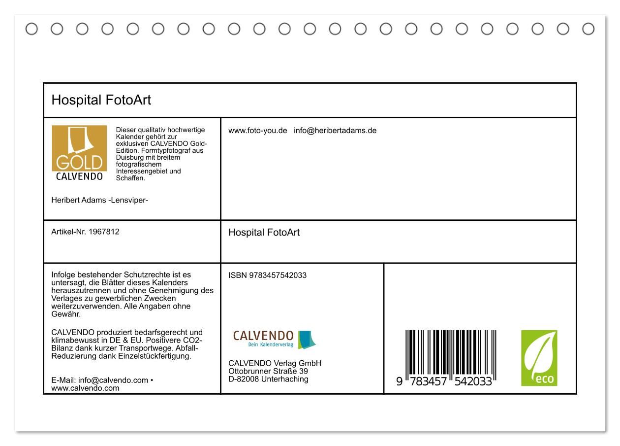 Dieser qualitativ hochwertige Kalender gehört zur exklusiven CALVENDO Gold-Edition. FotoArt im Krankenhaus, so könnte man diese Bilder bezeichnen. Aufgenommen unter fotografisch/künstlerischem Aspekt mit positiver Ausstrahlung. Sie spiegeln ein Spektrum versch...