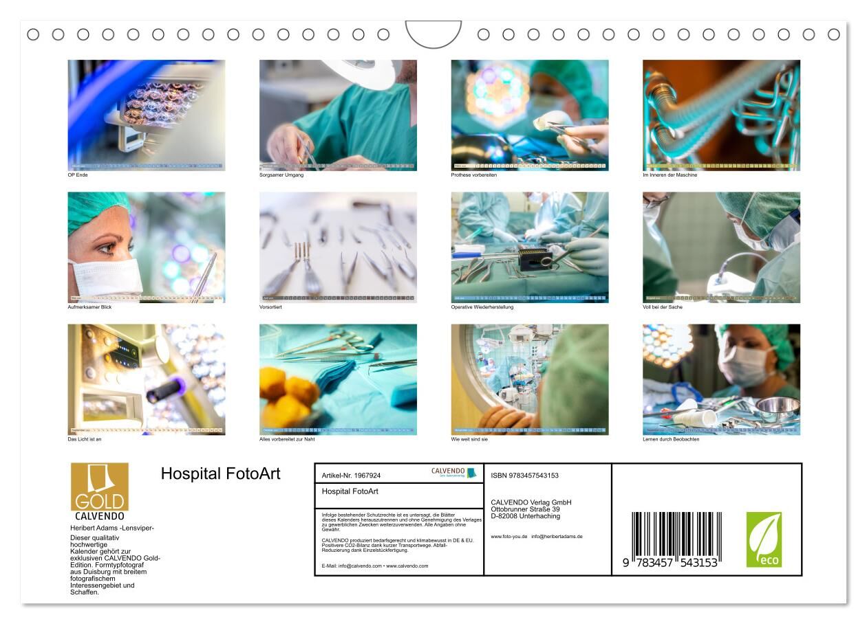 Dieser qualitativ hochwertige Kalender gehört zur exklusiven CALVENDO Gold-Edition. FotoArt im Krankenhaus, so könnte man diese Bilder bezeichnen. Aufgenommen unter fotografisch/künstlerischem Aspekt mit positiver Ausstrahlung. Sie spiegeln ein Spektrum versch...