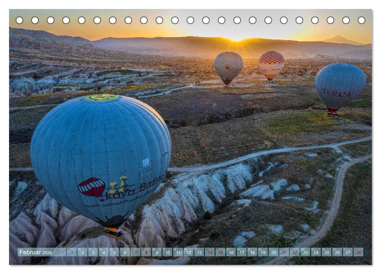 Erleben Sie das Faszinierende von Kappadokien in einem atemberaubenden Kalender! Tauchen Sie ein in die magische Welt dieser historisch und spirituell bedeutsamen Region, wo Geschichte, Kultur und Landschaft zusammen mit einer Ballonfahrt zu einem unvergesslic...