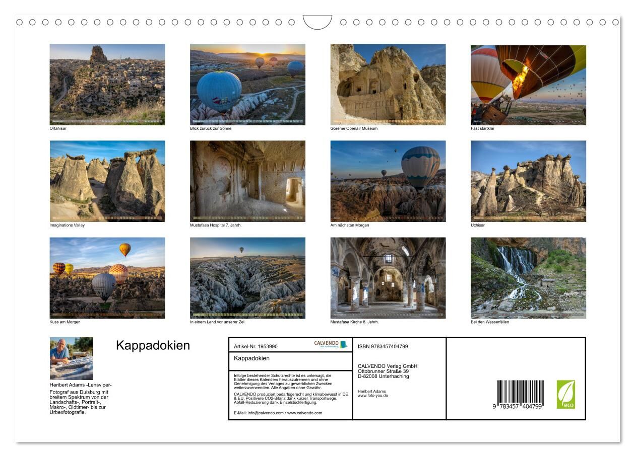 Erleben Sie das Faszinierende von Kappadokien in einem atemberaubenden Kalender! Tauchen Sie ein in die magische Welt dieser historisch und spirituell bedeutsamen Region, wo Geschichte, Kultur und Landschaft zusammen mit einer Ballonfahrt zu einem unvergesslic...