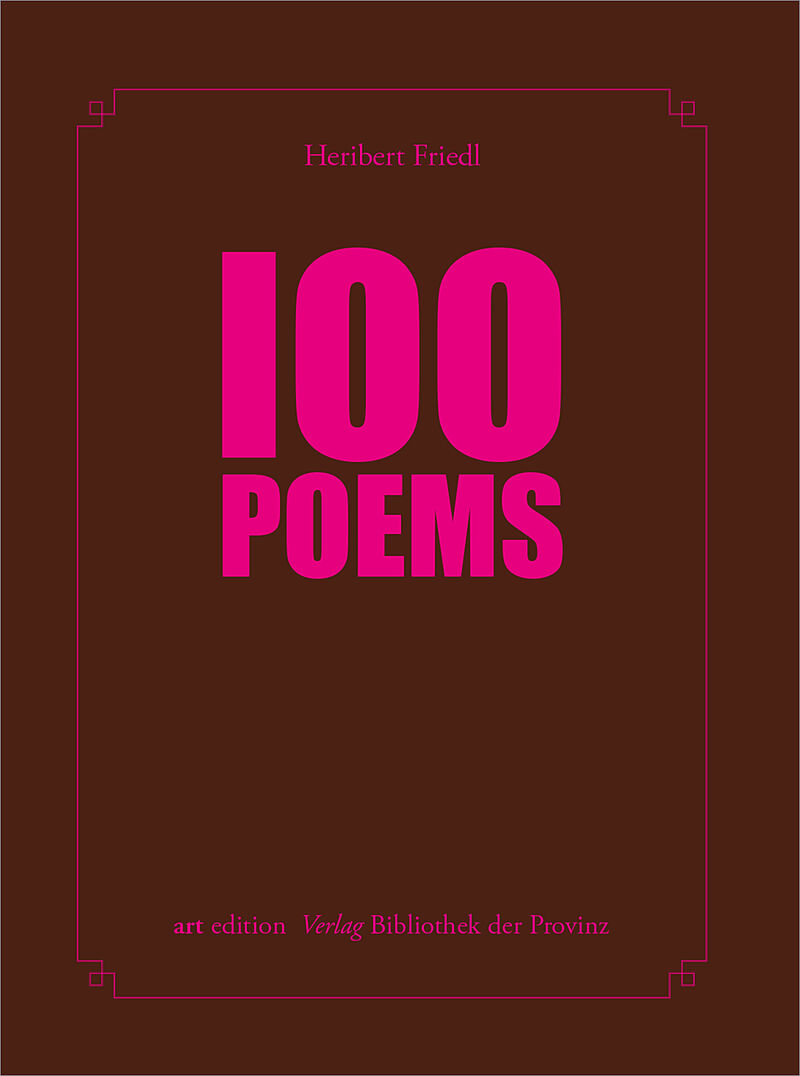 100 POEMS: Heribert Friedl, eigentlich seit Jahrzehnten für seine nonvisualobjects bekannt, malt hier in einer Druckwelle von Inspiration Sprachverdichtungen von ungeheurer Einfachheit und Schönheit. Ursprünglich aus einem Moment existenzieller Trauer begonnen...