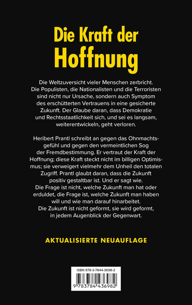 Die Weltzuversicht vieler Menschen zerbricht. Die Populisten, die Nationalisten und die Terroristen sind nicht nur Ursache, sondern auch Symptom des erschütterten Vertrauens in eine gesicherte Zukunft. Der Glaube daran, dass Demokratie und Rechtstaatlichkeit s...