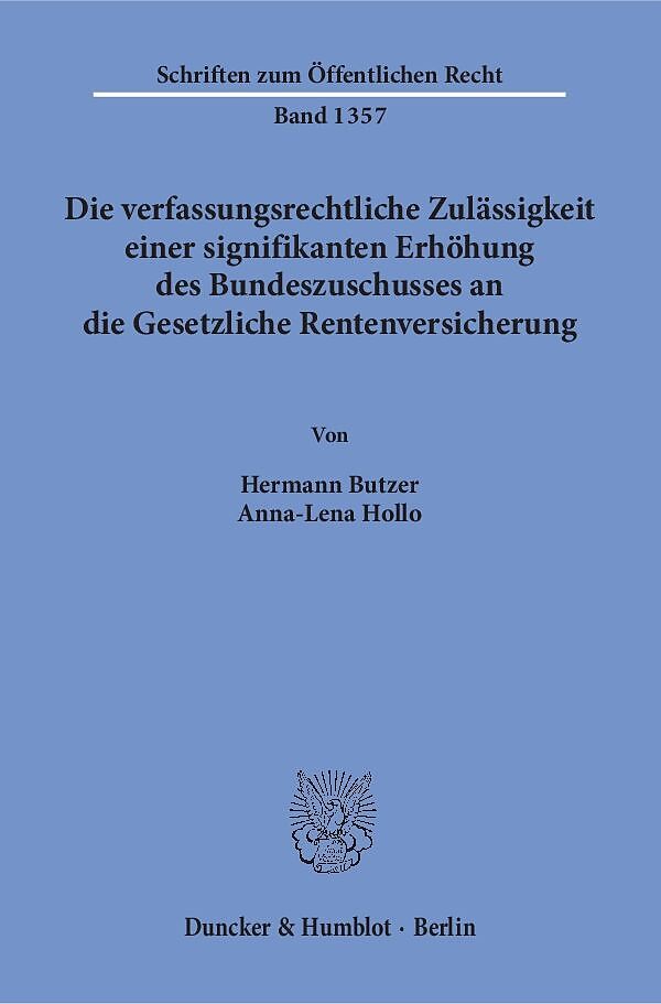 Die Untersuchung gilt der Frage, ob es für Bundeszuschüsse an die Gesetzliche Rentenversicherung eine verfassungsrechtliche Obergrenze gibt und wo diese ggf. liegt. Die Verfasser kommen zu dem Ergebnis, dass Art. 120 Abs. 1 Satz 4 GG, das Eigentumsrecht an soz...