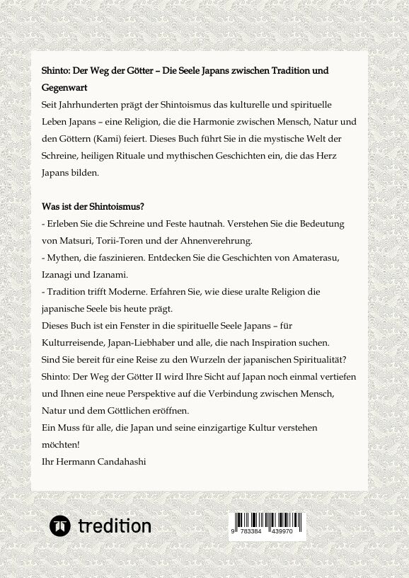 Shinto: Der Weg der Götter II Die Seele Japans zwischen Tradition und Gegenwart Entdecken Sie mit "Shinto: Der Weg der Götter II" eine einzigartige Reise in die faszinierende Welt des Shintoismus, der ältesten Religion Japans. Dieses Buch entführt Sie in eine ...