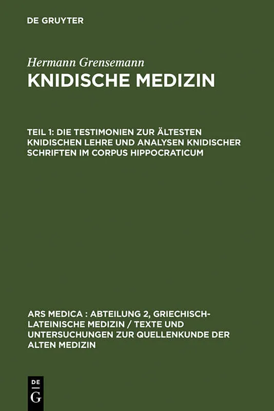 Keine ausführliche Beschreibung für "Die Testimonien zur ältesten knidischen Lehre und Analysen knidischer Schriften im Corpus Hippocraticum" verfügbar. Frontmatter -- A. Testimonien und Fragmente -- B. I. Einleitung -- B. II. Zu den Testimonien und ...