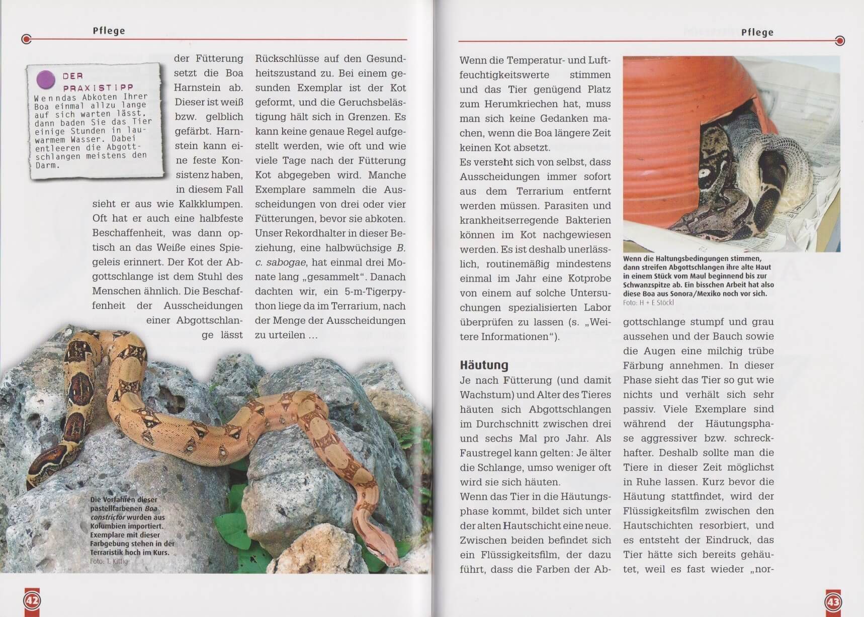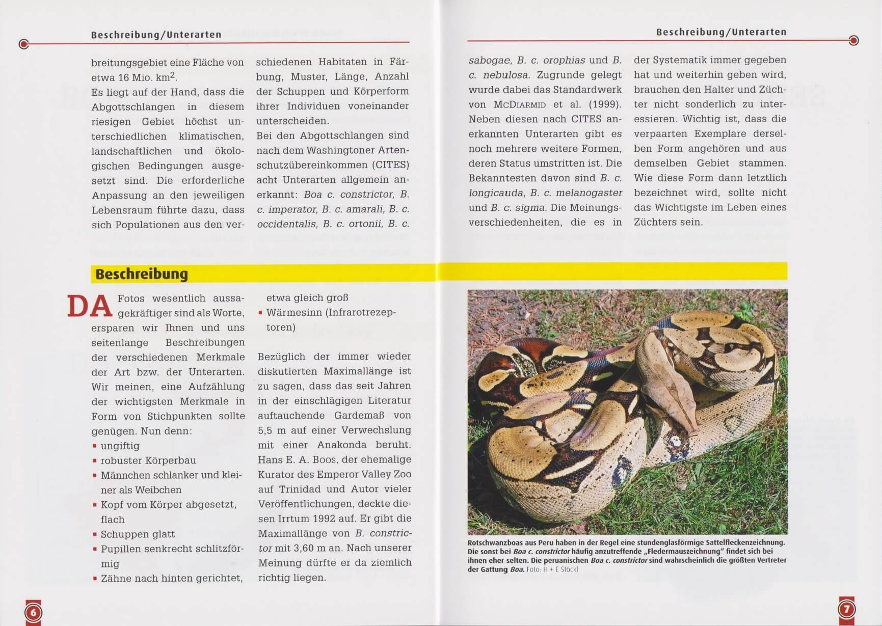 Die Abgottschlange Boa constrictor ist ohne Zweifel die populärste Riesenschlange in der Terraristik. Sie ist auch unter den Namen Königsschlange, Königsboa oder Abgottboa bekannt. Ihre majestätische Länge zusammen mit der großen Vielfalt an Färbungen der einz...