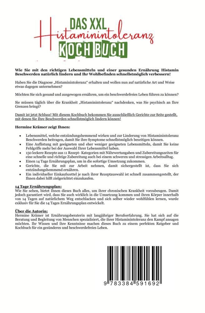 Entdecken Sie die heilende Kraft der richtigen Ernährung mit "Das XXL Histaminintoleranz Kochbuch" von Hermine Krämer. Dieses umfassende Werk bietet Ihnen 150 leckere und histaminarme Rezepte, die speziell darauf ausgerichtet sind, die Symptome einer Histamini...