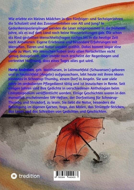 Wie erlebte ein kleines Mädchen in den Fünfziger- und Sechzigerjahren die Schulzeit und das Zusammenleben von Alt und Jung? In Gedankenspaziergängen werden die Leser mitgenommen in die früheren Jahre, als es auf dem Land noch keine Wasserleitungen gab. Die sch...